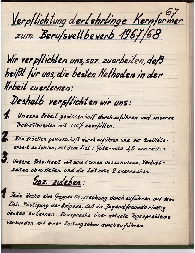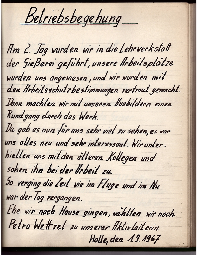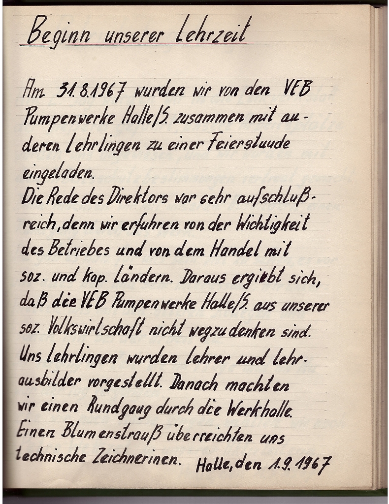 Beiträge zur Betriebsgeschichte des VEB Kombinat Pumpen und Verdichter, Stammbetrieb VEB Pumpenwerke Halle/S. Von mir eingescannt und hier veröffentlicht in zwei PDF-Dateien. In der Betriebsgeschichte nicht angegeben: Am 08.11.1968 Einweihung der Lehrgießerei der Pumpenwerke Halle/S. - BBS. Siehe letzte Seite im Brigadetagebuch der Kernmacherinnen 1967 - 1969.